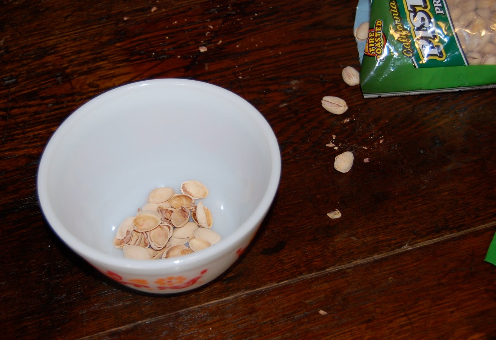 First, you have to shell the pistachios. Cash did most of this part, totally eating all of nuts as he went through the process. (They are a bit addictive.)