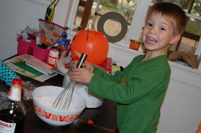 5. I made Cash go out into the yard and pick me out a couple of little branches. I covered them with Mod Podge, and some orange glitter that was left over from the